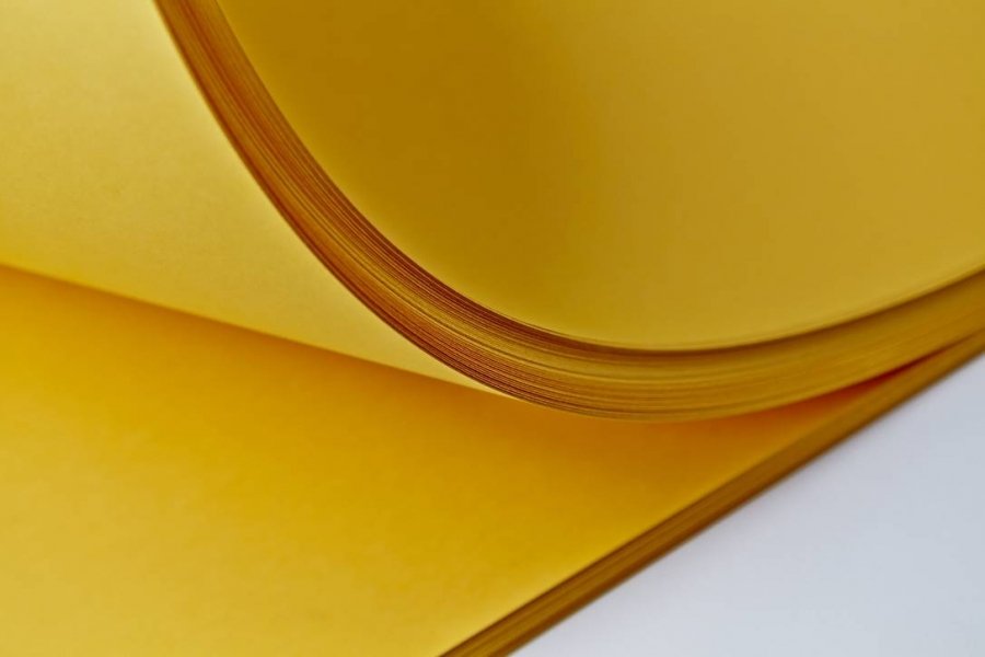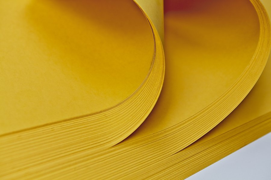 Papel apergaminhado, produzido a partir da composição de celulose branqueada de fibras curtas, aparas brancas e coloridas de primeira qualidade, cujas principais características são o elevado padrão de bulk, superfície lisa, propriedades elétricas controladas, estabilidade dimensional, colorido na massa, resistência da cor á luz e adequação para corte e vinco.